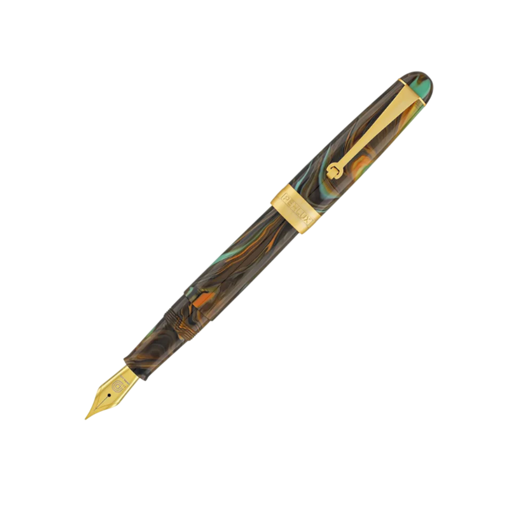 Save 10%Penlux Grand Brown Wave With Gold Plated Trim Fountain Pen - Medium Nib